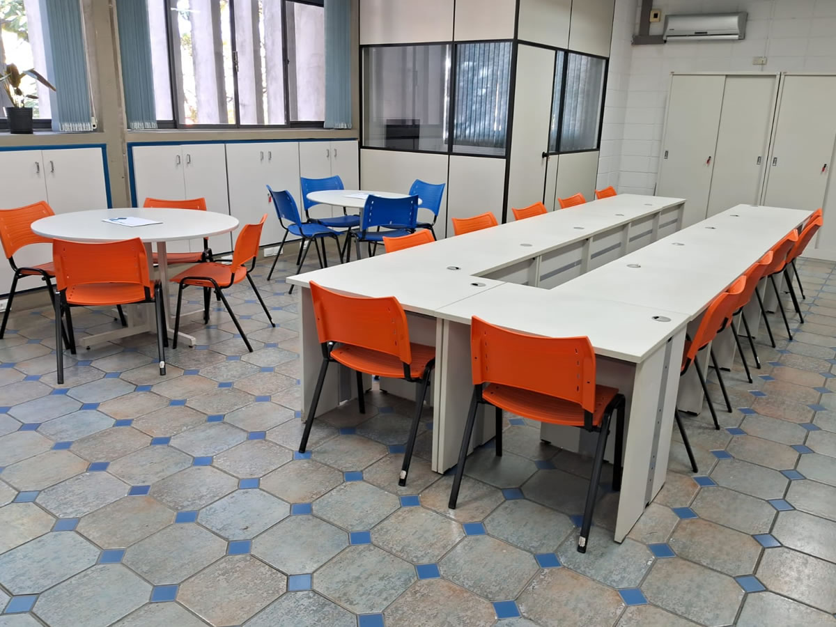 Sala de cursos (plenário), biblioteca, espaço coworking, sala de reuniões, recepção e coffee são alguns dos espaços que a sede da AEJ disponibiliza à Diretoria e aos associados, e também a estudantes e empresas que demandem por apoio e informações técnicas. Confira: